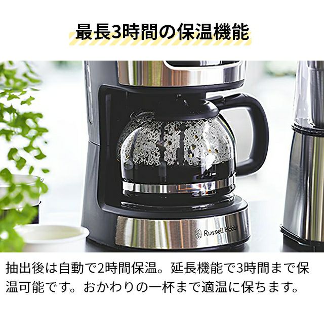 他の画像を見る 手頃な5カップサイズはそのままに、従来品よりも抽出温度が5%アップしたドリップ式コーヒーメーカー。珈琲の油分まで味わえるフィルターとの相乗効果で、さらに美味しく。 ラッセルホブス 【選べる豪華特典】 コーヒーメーカー ベーシックドリップ 7620JP コーヒーマシン ドリップ式 おしゃれ ガラス容器 コンパクト 2カップ 3カップ 5杯 洗いやすい 粉 タイマー付き 保温機能付 自動電源オフ Russell Hobbs 当店特別価格 ¥ 8,800 税込 詳細を見る お気に入りに登録する