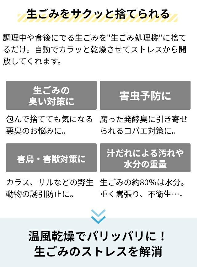 他の画像を見る 助成金対象!家庭用におすすめの小型でコンパクトなごみ処理機。温風で魚や鳥の骨、卵の殻も処理でき、臭わず簡単に使えます。 サンカ 【選べる豪華特典】 温風乾燥式生ごみ処理機 エコカリス SDG-3000 生ゴミ処理機 助成金対象 乾燥機 肥料 家庭用 おすすめ おしゃれ 機械式 コンパクト 小型 鳥の骨 卵の殻 廃棄 一人暮らし 温風 魚 フィルター付き 簡単 SANKA EcoCalis 当店特別価格 ¥ 35,200 税込 詳細を見る お気に入りに登録する