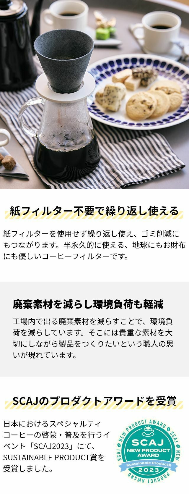 他の画像を見る まるで湧き水で淹れたような、まろやかで美味しいコーヒーが楽しめるセラミック製のコーヒーフィルター。紙フィルター不要で、半永久的に何度でもお使いいただけます。 セラポッタ コーヒードリッパー セラミックコーヒーフィルター DP-013 ドリッパー セラミックフィルター 波佐見焼 ドリップコーヒー おしゃれ フィルター不要 セラミック ペーパーレス キャンプ cerapotta ceramic coffee filter 当店特別価格 ¥ 6,930 税込 詳細を見る お気に入りに登録する