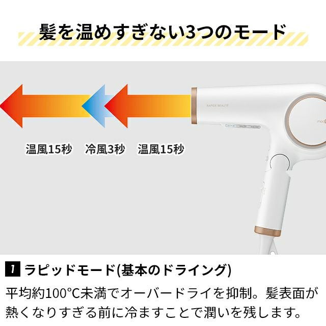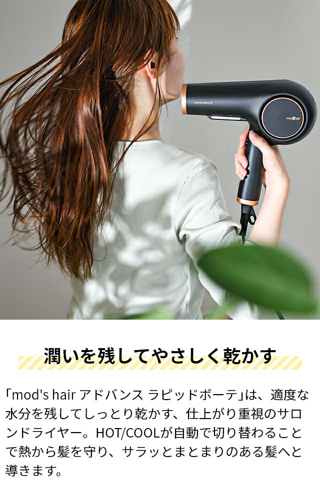 他の画像を見る 適度な水分を残してしっとり乾かす、仕上がり重視のサロンドライヤー。HOT/COOLが自動で切り替わることで熱から髪を守り、サラッとまとまりのある髪へと導きます。 モッズヘア 【特典付き】 ヘアドライヤー アドバンス ラピッドボーテ MHD-1254 ヘアードライヤー マイナスイオン サラサラ 軽い 美髪 熱くない 軽量 大風量 くし付き ストレート 速乾 温冷自動切替 自動 温度調節 サロンドライヤー mod's hair 当店特別価格 ¥ 14,080 税込 詳細を見る お気に入りに登録する
