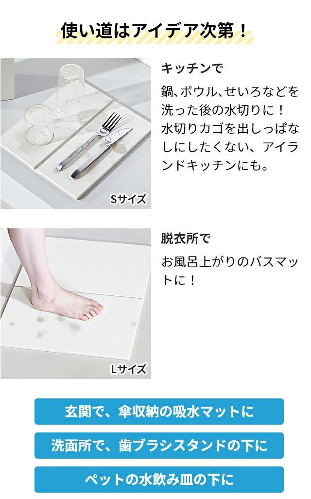 他の画像を見る 折り畳み式で広げると2倍の大きさになり、収納時はコンパクトな吸水ボード。珪藻土とひる石を使用し、優れた吸水・速乾性でサラッと快適。洗面、キッチン水切りに! ソイル ジェム 珪藻土マット GEM フォルダブルボード S 珪藻土マット 足ふきマット ドライングボード ドライングプレート 水切りプレート 吸水マット 吸水 キッチン 速乾 乾き やすい 日本製 薄い コンパクト 国産 おしゃれ 滑り止めなし soil 当店特別価格 ¥ 7,150 税込 詳細を見る お気に入りに登録する