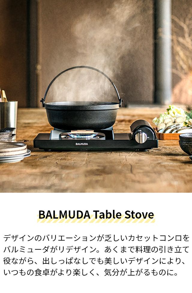 他の画像を見る どんな料理も映えるシンプルなデザイン、どんなスタイリングにも馴染む黒子的な存在感のガスコンロ。驚きの薄型で、耐荷重性も備え、30cmの大きな10号鍋も使えます。 バルミューダ カセットコンロ テーブルストーブ KGS01JP ガスコンロ 小型コンロ 防災 防災用 コンロ 卓上 卓上コンロ 小型 薄型 おしゃれ かわいい 可愛い コンパクト スリム 鍋 ガス アウトドア キャンプ BALMUDA Table Stove 当店特別価格 ¥ 19,800 税込 詳細を見る お気に入りに登録する