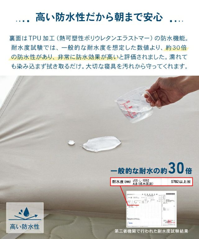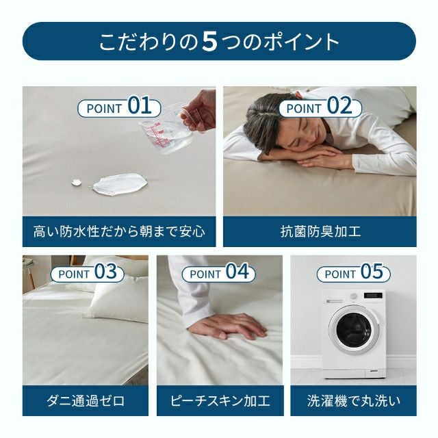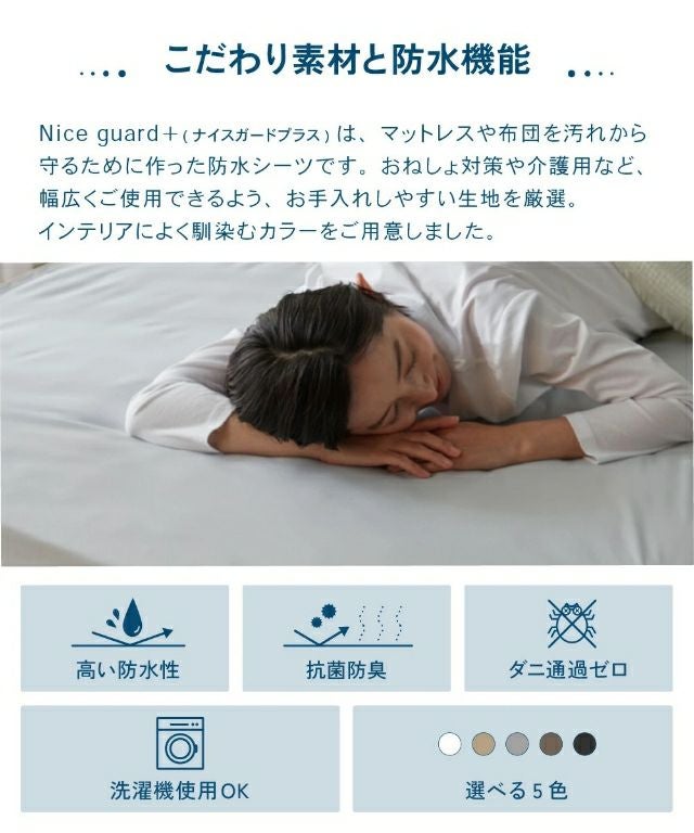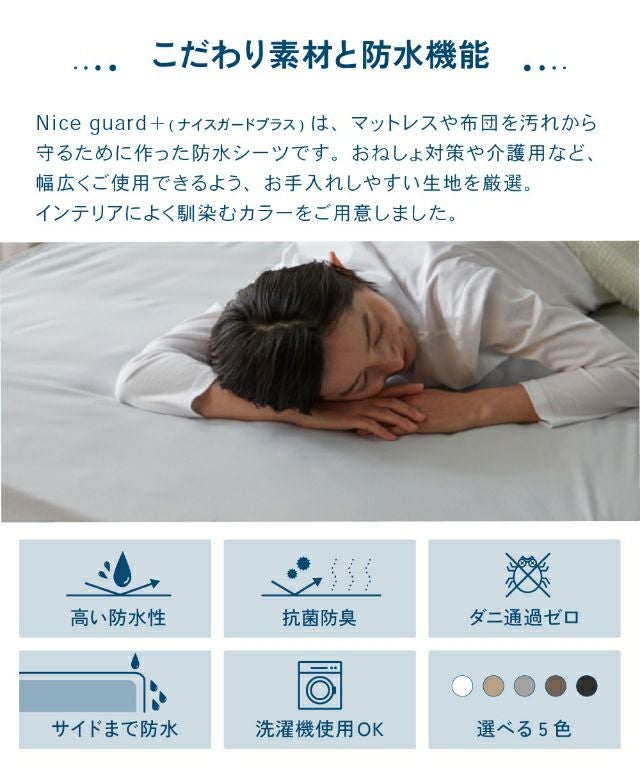 他の画像を見る マットレスを汚れから守る防水シーツ。肌ざわりのよいピーチスキン加工と、耐水度約30倍のTPU防水で安心。抗菌防臭で清潔を保ち、洗濯機で丸洗いでき長く使えます。 ナイスデイ おねしょシーツ Nice guard+ ナイスガードプラス サイドまでしっかり防水シーツ クイーン ボックスシーツ マットレスカバー 介護シーツ BOXシーツ 防水 ベビー おしゃれ 赤ちゃん 一体型 介護 抗菌 洗える 防臭 洗濯 Niceday 当店特別価格 ¥ 3,298 税込 詳細を見る お気に入りに登録する