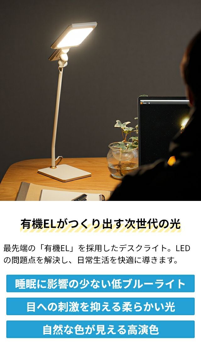 他の画像を見る 国宝の展示にも使われる有機EL照明を採用!低ブルーライトで目に優しく、高演色でモノを自然に照らします。睡眠前、作業時、勉強時と幅広く活躍するライトです。 デスクライト 【選べる豪華特典】 エグザームアルファ LEX-3150 LEX-3151 テーブルランプ ライト 読書灯 目に優しい 昼白色 電球色 有機EL 高演色 調光 低ブルーライト 広範囲 おしゃれ 北欧 寝室 リビング 学習机 読書 勉強 学習用 子供 コンパクト 省スペース EXARM α 当店特別価格 ¥ 19,800 税込 詳細を見る お気に入りに登録する