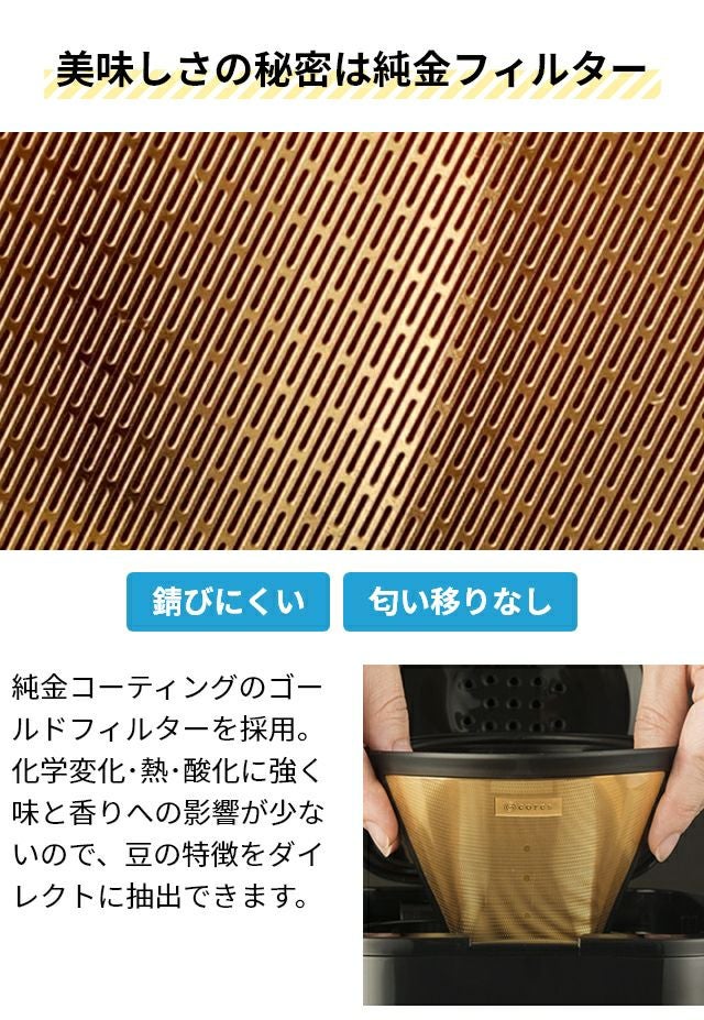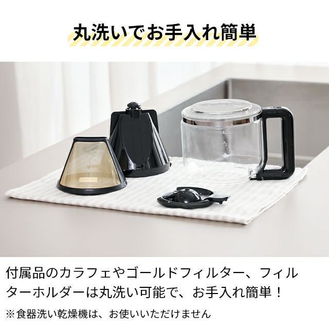 他の画像を見る スタイリッシュなフォルムと、美味しさにこだわり多機能を凝縮したコーヒーメーカー。豆本来の風味・甘みを味わえる、純金コーティングのゴールドフィルターも標準装備。 ラッセルホブス 【選べる豪華特典】 コーヒーメーカー グランドリップ 10カップ 7651JP コーヒーマシン 10杯 おしゃれ ガラス容器 珈琲 コンパクト 3カップ 5杯 6杯 8杯 タイマー付き フィルター不要 保温機能付 自動電源オフ Russell Hobbs 10cup 当店特別価格 ¥ 11,000 税込 詳細を見る お気に入りに登録する