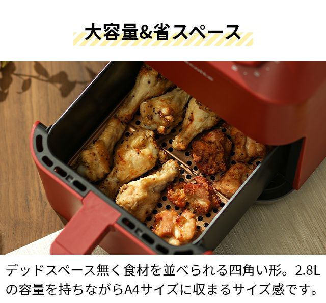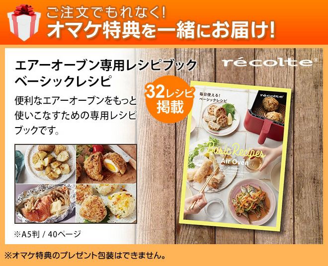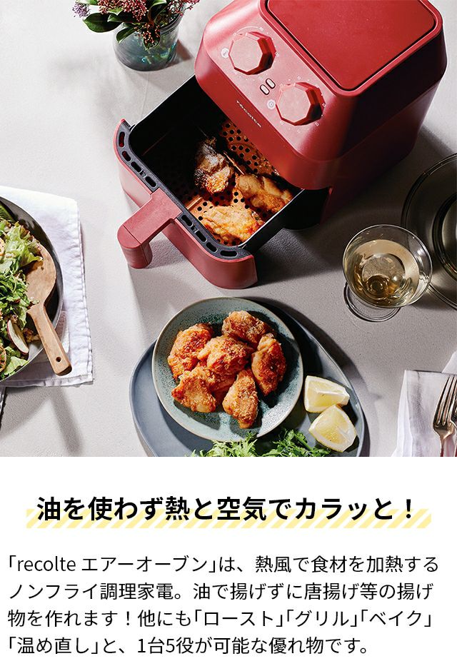 他の画像を見る 揚げ物は好きだけどカロリーが気になるし、使用済み油の処理や、飛び散り油の掃除が面倒…そんなお悩みはありませんか? エアーオーブンならそんなお悩みを解決します。 レコルト 【特典専用レシピ付き】 ノンフライヤー エアーオーブン RAO-1 ヘルシーフライヤー 電気フライヤー エアオーブン エアフライヤー ノンオイルフライヤー 家庭用 2.8L 小型 オイルフリー 油を使わない 低カロリー ダイエット 健康 唐揚げ recolte 当店特別価格 ¥ 9,900 税込 詳細を見る お気に入りに登録する