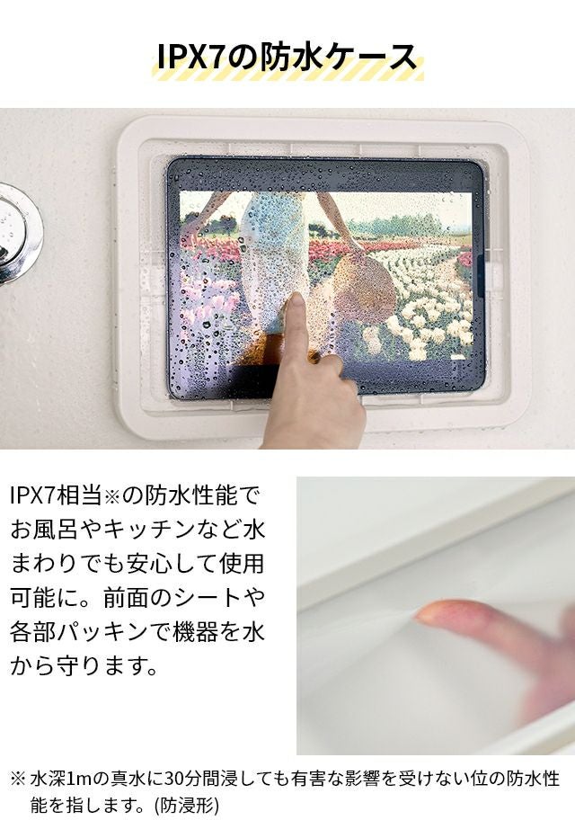 他の画像を見る タブレットを水濡れから守るケース。IPX7の防水性能をもち、タブレットを水周りで安心して使えるようになります。マグネットでの壁面設置や置いての角度調整にも対応。 リズム タブレットケース 防水 マグケース T MAGCASE タブレット用防水ケース 9YY019RH03 タブレットスタンド ipad 防水ケース ケース お風呂 風呂 防水 YouTube アマプラ Android キッチン 動画 映画 音楽 入浴 マグネット 壁 浴室 磁石 RHYTHM 当店特別価格 ¥ 3,980 税込 詳細を見る お気に入りに登録する