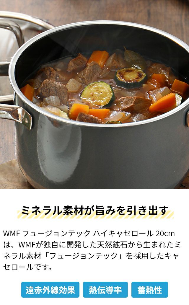 他の画像を見る 独自のミネラル素材から作られたキャセロール20cm。遠赤外線によって食材の美味しさを引き立てます。酸やアルカリに強く優れた耐久性で長く愛用していただけます。 WMF 【選べる豪華特典】 両手鍋 フュージョンテック ミネラル ハイキャセロール20cm W051 鍋 深鍋 炊飯 20cm 深型 小さめ おしゃれ ガラス蓋付き ih対応 炒め物 食洗機対応 茹でる 焦げにくい ガス対応 ガラス蓋 ずっと使える ヴェーエムエフ 当店特別価格 ¥ 29,700 税込 詳細を見る お気に入りに登録する