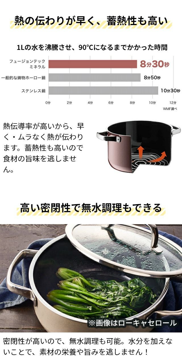 他の画像を見る 独自のミネラル素材から作られたローキャセロール20cm。遠赤外線によって食材の美味しさを引き立てます。酸やアルカリに強く優れた耐久性で長く愛用していただけます。 WMF 【選べる豪華特典】 両手鍋 フュージョンテック ミネラル ローキャセロール20cm W051 鍋 鍋 浅型 炊飯 20cm 浅型 焦げにくい おしゃれ ガラス蓋付き ih対応 炒め物 食洗機対応 茹でる ガス対応 ガラス蓋 ずっと使える ヴェーエムエフ 当店特別価格 ¥ 28,490 税込 詳細を見る お気に入りに登録する