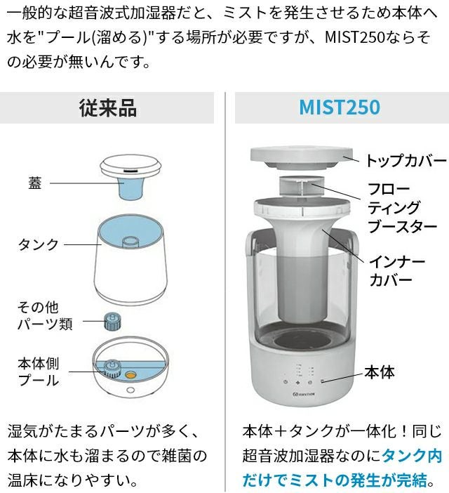 他の画像を見る 乾燥する季節に快適湿度をキープする超音波式プールレス加湿器。毎日「新鮮で綺麗な水」で加湿できるように、洗いやすさ、使いやすさを一から見直しました。 リズム 【選べる豪華特典】 プールレス加湿器 ミスト250 9YYA64RH 超音波加湿器 超音波式 お手入れ簡単 卓上加湿器 小型 小型 大容量 ミスト アロマ おしゃれ リビング 床置き 6畳以上対応 かわいい 寝室 静音 湿度調整 RHYTHM MIST250 当店特別価格 ¥ 15,800 税込 詳細を見る お気に入りに登録する