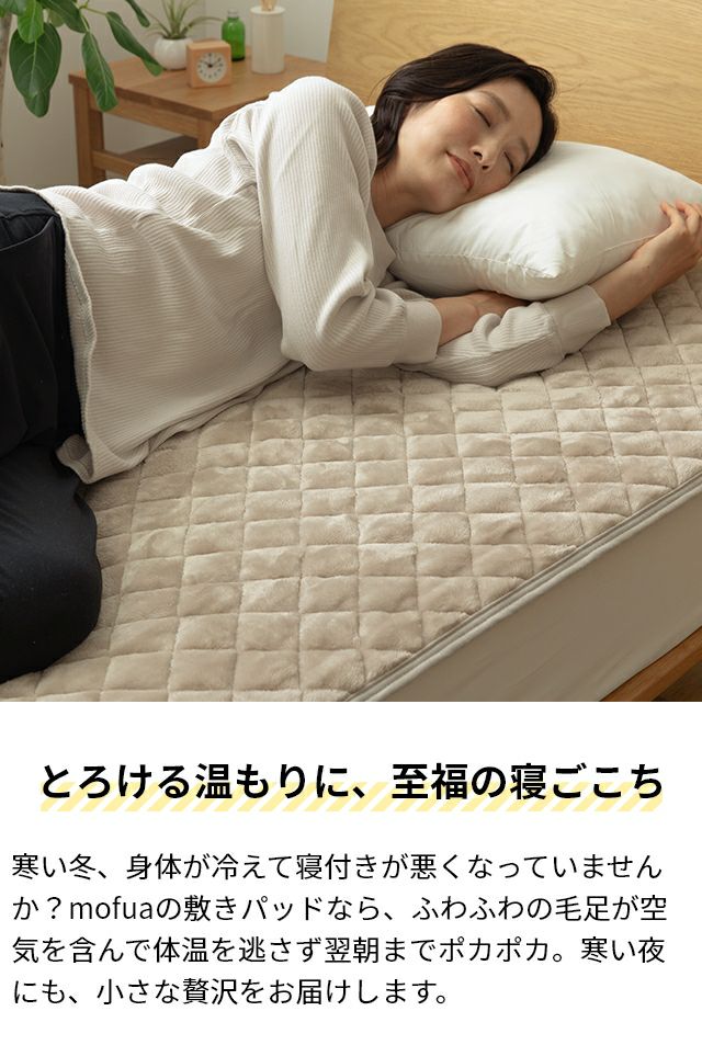 他の画像を見る 超極細マイクロファイバーが空気を含んで体温を逃さず翌朝までポカポカ!とろけるような触り心地で思わず頬ずりしたくなるほど。極上の寝心地が得られる敷きパッド。 敷きパッド 1年保証 モフア mofua プレミアムマイクロファイバー 敷パッド セミダブル SD 洗える タイプ シーツ ベッドパッド 冬 寝具 あったか ナイスデイ 当店特別価格 ¥ 3,480 税込 詳細を見る お気に入りに登録する