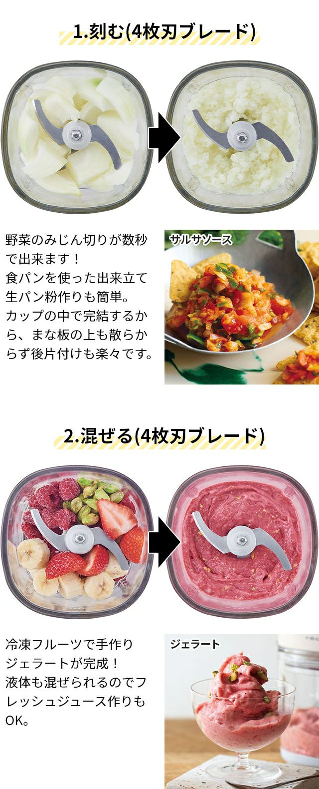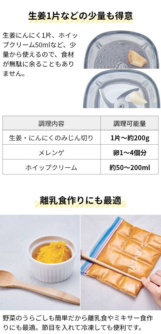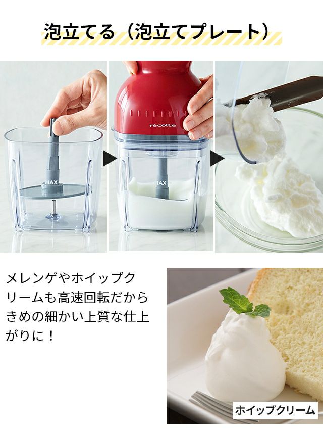 他の画像を見る 手軽に、瞬時に【刻む・混ぜる・練る・潰す・砕く・おろす・泡立てる】が出来てしまうフードプロセッサー。28種の個性的な料理が掲載されたレシピ本も付属します。 【選べる2大特典】 フードプロセッサー ブレンダー ミキサー アイスクラッシャー 大根おろし 離乳食 氷 砕く ホイップ 生クリーム 泡立て ひき肉 おしゃれ 500ml 7役 家電 キッチン [recolte レコルト Capsule Cutter Bonne カプセルカッター ボンヌ RCP-3] 当店特別価格 ¥ 7,150 税込 詳細を見る お気に入りに登録する