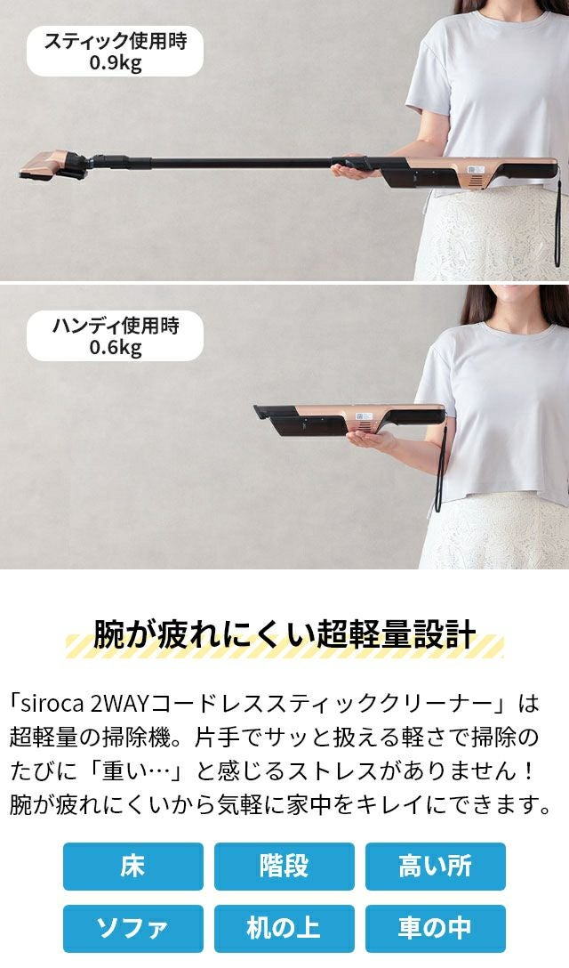 他の画像を見る 超軽量のコードレス掃除機です。片手でサッと扱える軽さで掃除のたびに「重い…」と感じるストレスがありません!腕が疲れにくいから気軽に家中をキレイにできます。 コードレス 掃除機 【選べる豪華特典】 siroca シロカ 2WAYコードレススティッククリーナー SV-S281 スティック ハンディー 充電式 収納 軽量 リチウムイオン サイクロン式 紙パック不要 LDK ベストバイ 一人暮らし 当店特別価格 ¥ 15,990 税込 詳細を見る お気に入りに登録する