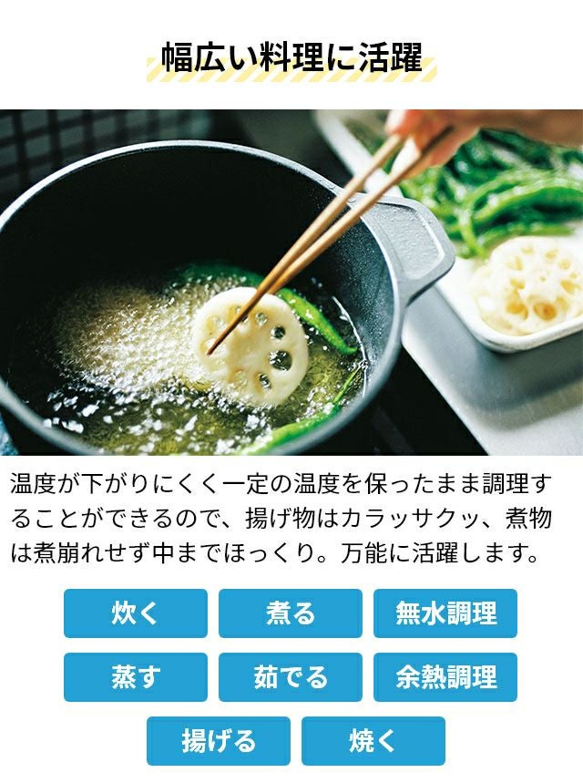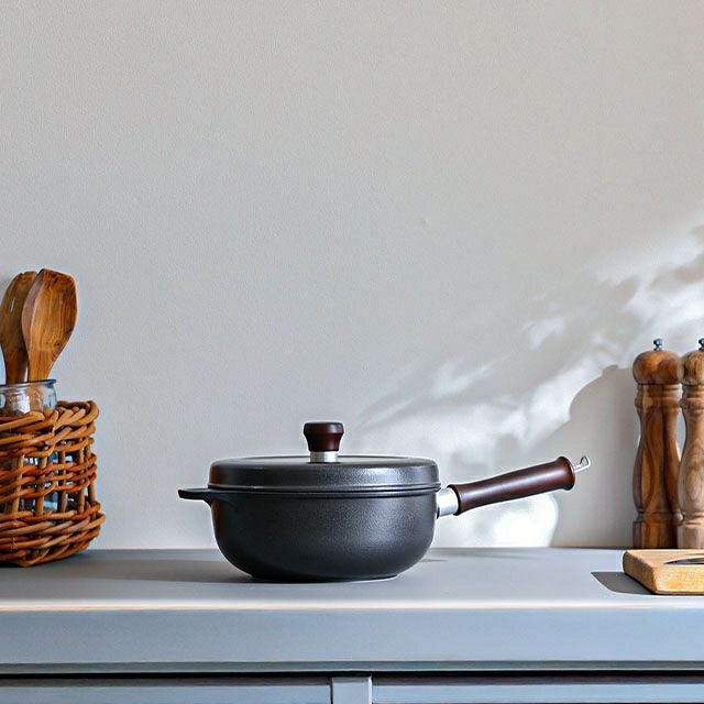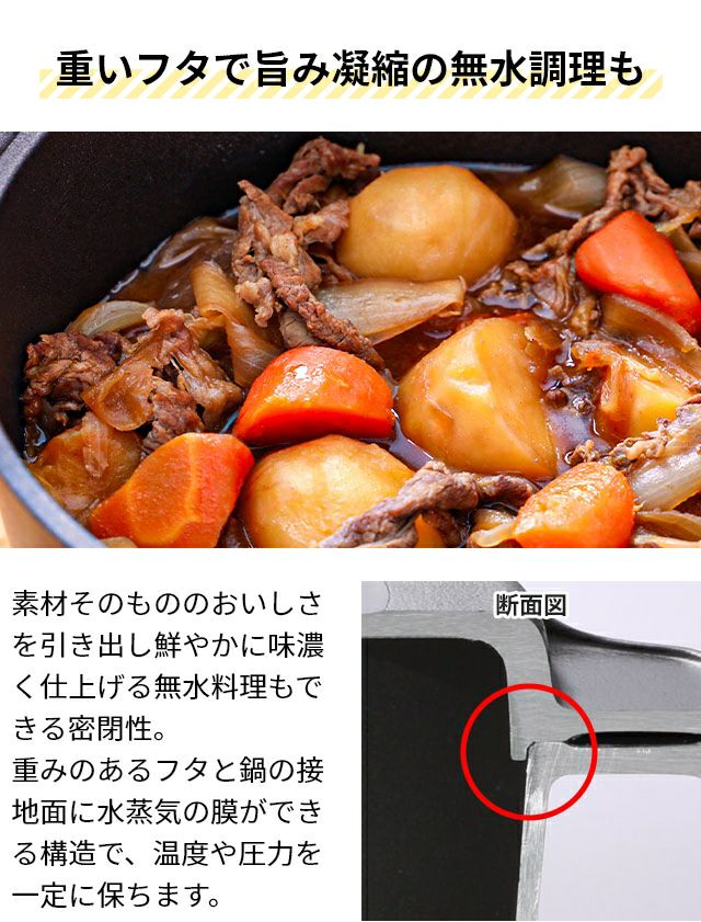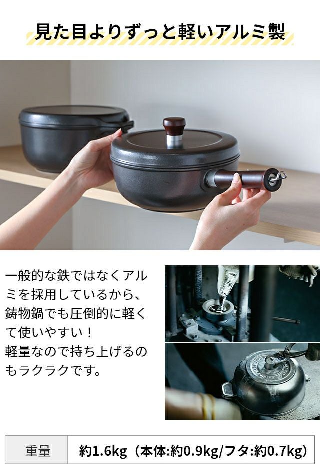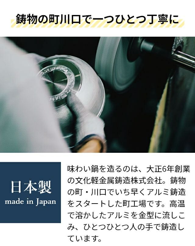 他の画像を見る 1985年の誕生以来愛され続ける「味わい鍋」は、薄手アルミ鍋が主流だった時代に、もっと美味しくつくるために開発された、日本独自の肉厚アルミ鋳物鍋です。 片手鍋 【豪華特典付き】 20cm 深型 味わい鍋 片手 20cm AJ-102 アルミ鍋 万能鍋 無水鍋 日本製 フッ素加工 コーティング 蓋つき 鋳物 軽い 軽量 焦げ付かない 人気 修理 長持ち ガス火専用 炊く 無水調理 煮込み おしゃれ グッドデザイン賞 ロングライフデザイン賞 当店特別価格 ¥ 26,400 税込 詳細を見る お気に入りに登録する