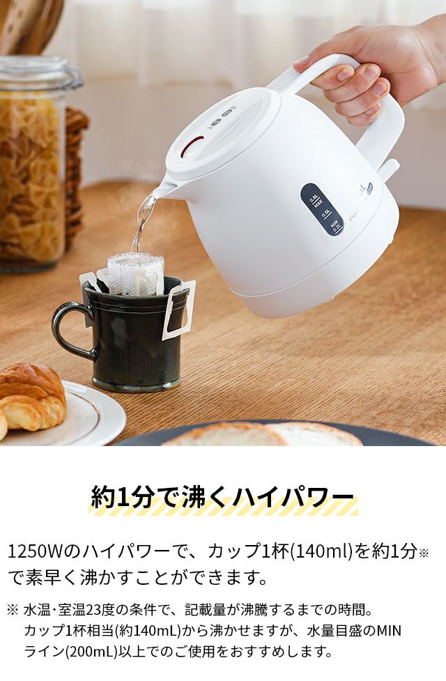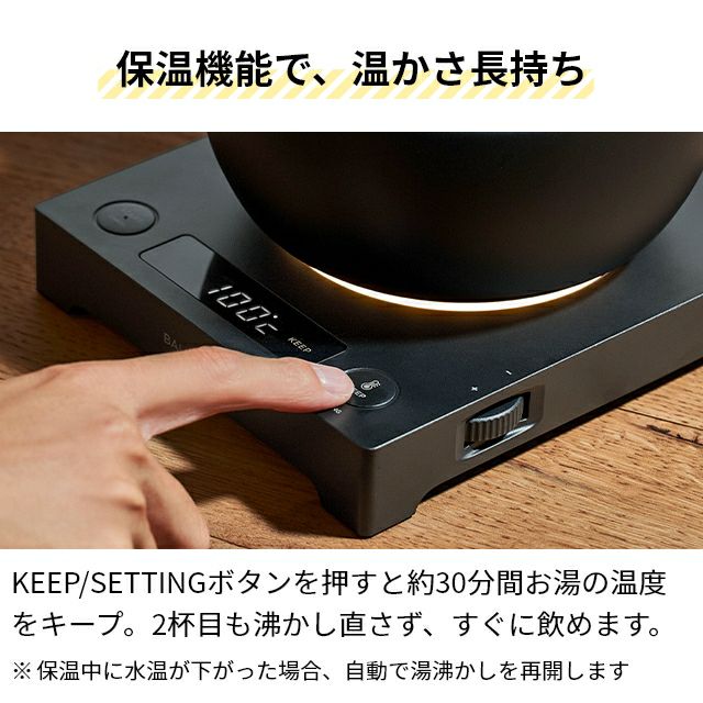 他の画像を見る 鉄瓶のような丸みが、深い落ち着きを感じさせる上品な電気ケトル。1℃単位での温度設定や、湯量調節が自由自在な注ぎ口など、日常での使いやすさにこだわりました。 バルミューダ 電気ケトル 保温 ムーンケトル KPT02JP 湯沸かし器 電気ポット ドリップポット おしゃれ 白湯 温度調節 すぐ沸く 温度調整 つや消し 美味しい 温度設定 お茶 コンパクト 珈琲 細口 北欧 一人暮らし かわいい BALMUDA Moon Kettle 当店特別価格 ¥ 27,500 税込 詳細を見る お気に入りに登録する