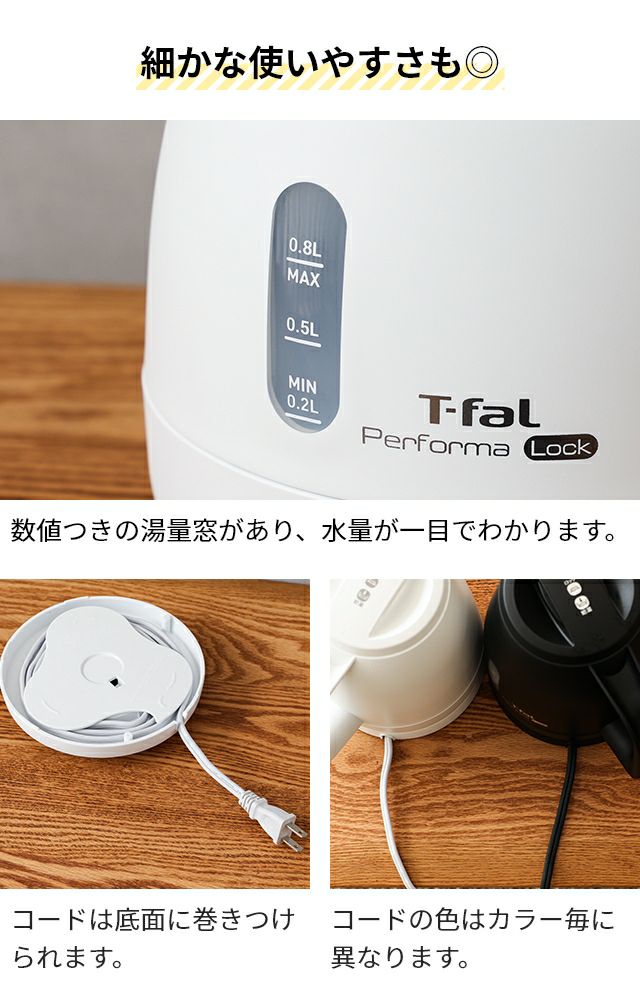 他の画像を見る 軽量、安心・安全の電気ケトル。注ぎ口から蒸気が出にくく、倒れてもお湯がこぼれにくい。1250Wのハイパワーなので、カップ1杯のお湯が約一分で沸きます。 ティファール ケトル パフォーマ ロック 0.8L KO1618JP 電気ケトル ポット 電気ポット 湯沸かし器 湯沸し コンパクト 小さい 軽量 転倒お湯漏れ防止 早い おしゃれ シンプル ハイパワー 800ml 一人暮らし 湯沸かしケトル お湯 コーヒー 珈琲 紅茶 T-fal 当店特別価格 ¥ 3,680 税込 詳細を見る お気に入りに登録する