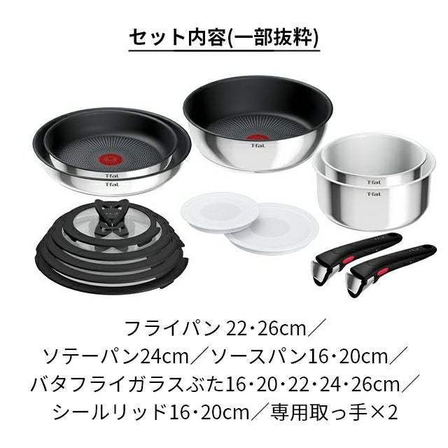 他の画像を見る 取っ手のとれるティファールシリーズの便利な14点セット。T-fal独自のチタン・インステンスコーティングのフライパンです。ステンレススチールの輝きに高級感が漂います。 ティファール 【選べる豪華特典】 フライパン インジニオ・ネオ IHステンレス グレース セット14 L893SE ソテーパン ソースパン 鍋 取っ手が取れる 蓋付き ih対応 ガス 深型 ステンレス 16cm 20cm 22cm 24cm 26cm 食洗機対応 長持ち おしゃれ T-FAL 当店特別価格 ¥ 25,000 税込 詳細を見る お気に入りに登録する