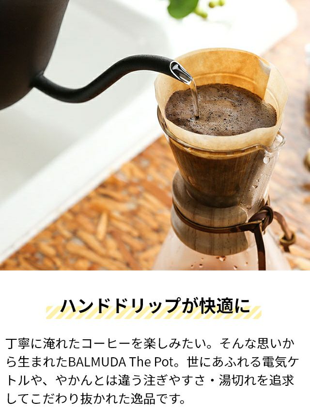 他の画像を見る 電気ケトルで沸かしてそのままドリップ!今までにない、プロ級の注ぎ心地。プレゼントにもおすすめ。 無料ラッピング 2024年モデル 正規品 バルミューダ ザ・ポット 電気ケトル ドリップポトル ポット 電気やかん コーヒー 紅茶 あんぜん 小さい 湯沸かし スリム 小さめ 麦茶 ステンレス 細口 お茶 小型 一人暮らし 600ml おすすめ BALMUDA The Pot 当店特別価格 ¥ 14,960 税込 詳細を見る お気に入りに登録する