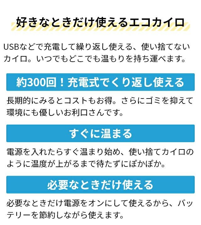 他の画像を見る 充電して約300回も繰り返し使えるエコなカイロ。素早く温まるので手指もすぐぽかぽか♪ポケットに入る小型で薄いサイズ感だから通勤や通学の防寒グッズとして役立ちます。 受験生 応援 合格祈願 【 充電式カイロ 】 イーカイロ オーバル EK-OV24 電気カイロ モバイルバッテリー 繰り返し 使える 寒波 対策 ハンドウォーマー usb かわいい 非常用 防災 小型 寒さ対策 防寒グッズ 省エネ エレス ELAiCE eKairoOval 当店特別価格 ¥ 3,100 税込 詳細を見る お気に入りに登録する