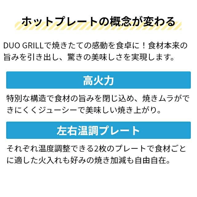 他の画像を見る 一人用や2人用に使える薄型ホットプレート。縦置き収納が可能で、一人暮らしに最適。2面プレートはお好み焼きや焼肉に対応し、油落ちスリットで余分な油を落とせます。 エバークックデコ 【選べる2大特典】 デュオグリル HPY-121 ホットプレート 一人用 2人用 2面 1枚 油落ちスリット 洗える おしゃれ お好み焼き 温度調節 収納 縦置き 一人暮らし 丸洗い 焼肉 薄型 折りたたみ evercook DECO DUO GRILL 当店特別価格 ¥ 24,200 税込 詳細を見る お気に入りに登録する