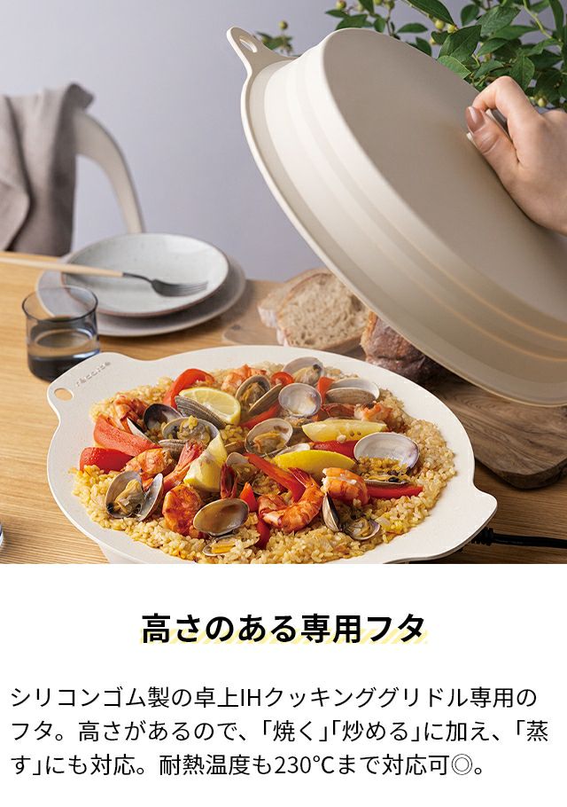 他の画像を見る 円形フォルム「卓上IHヒーター」と、調理できる大皿「クッキンググリドルプレート」と「専用フタ」のセット。みんなで熱々の料理を囲めば食事がさらに美味しく! レコルト 【選べる3大特典】 マルチグリドル 卓上IHクッキンググリドル 専用フタセット RIH-1 プレートセット プレートとフタセット グリドルパン 蓋 シリコン製 IH 33cm 折りたためるフタ 省スペース 焼肉 蒸し調理 蒸し餃子 ステーキ recolte 当店特別価格 ¥ 22,660 税込 詳細を見る お気に入りに登録する