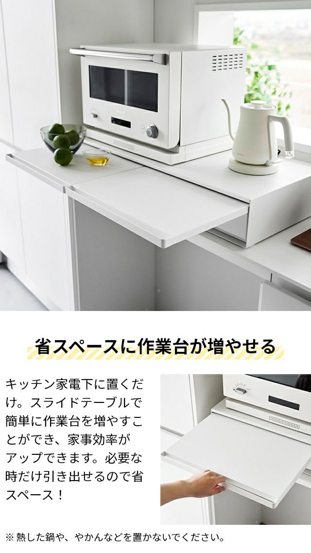 他の画像を見る お皿やお料理の一時置き場としたり、調理台として便利な、引き出し収納付きの2段スライドテーブル。炊飯器や電子レンジを乗せて、手軽に作業台と引き出しが増やせます! 山崎実業 スライドラック ツーウェイキッチン家電下引き出し&スライドテーブル タワー W80 1697 1698 ラック 収納棚 作業台 レンジラック トレー 調理台 家電ラック 2段 tower キッチン収納 家電下収納 yamazaki タワーシリーズ 当店特別価格 ¥ 23,100 税込 詳細を見る お気に入りに登録する