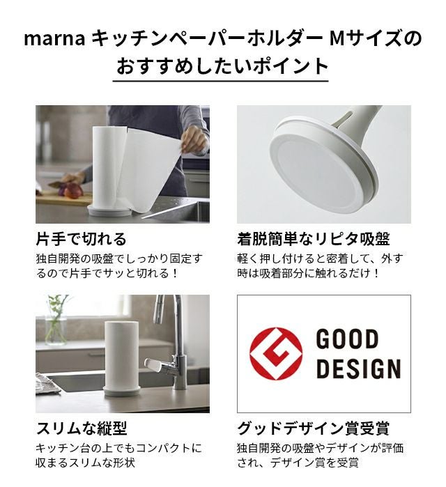 他の画像を見る 何度もピタッ、外すときは触れるだけ。着脱簡単な吸盤「REPITA(リピタ)」を採用したキッチンペーパーホルダー。片手で引き出して、サッと切れます。スリムな縦型デザイン。 マーナ 【選べる豪華特典】 キッチンペーパーホルダー Mサイズ キッチンペーパースタンド スタンド ロールホルダー 片手で切れる 北欧 吸盤 軽量 おしゃれ スリム 可愛い コンパクト 縦型 自立 置き型 片手でちぎれる 切れやすい シンプル marna 当店特別価格 ¥ 3,300 税込 詳細を見る お気に入りに登録する