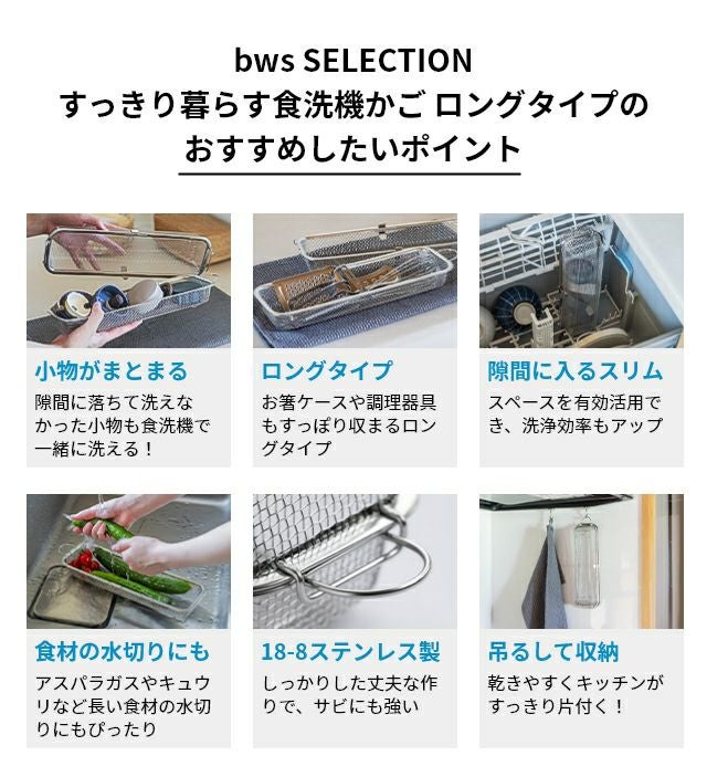 他の画像を見る 人気の食洗機かごが長くなって登場!お弁当の箸ケースや長いキッチンツール、家族分の水筒のフタもすっぽり収まります。縦向きにして隙間に入れられるスリム形状です。 ビーワースセレクション すっきり暮らす食洗機かご ロングタイプ 水切りかご 洗い物カゴ 水切りバスケット ざる 小物ネット ステンレス 長方形 スリム 日本製 洗い物 おしゃれ 北欧 可愛い コンパクト 省スペース 食洗機対応 燕三条 bws SELECTION 当店特別価格 ¥ 3,980 税込 詳細を見る お気に入りに登録する