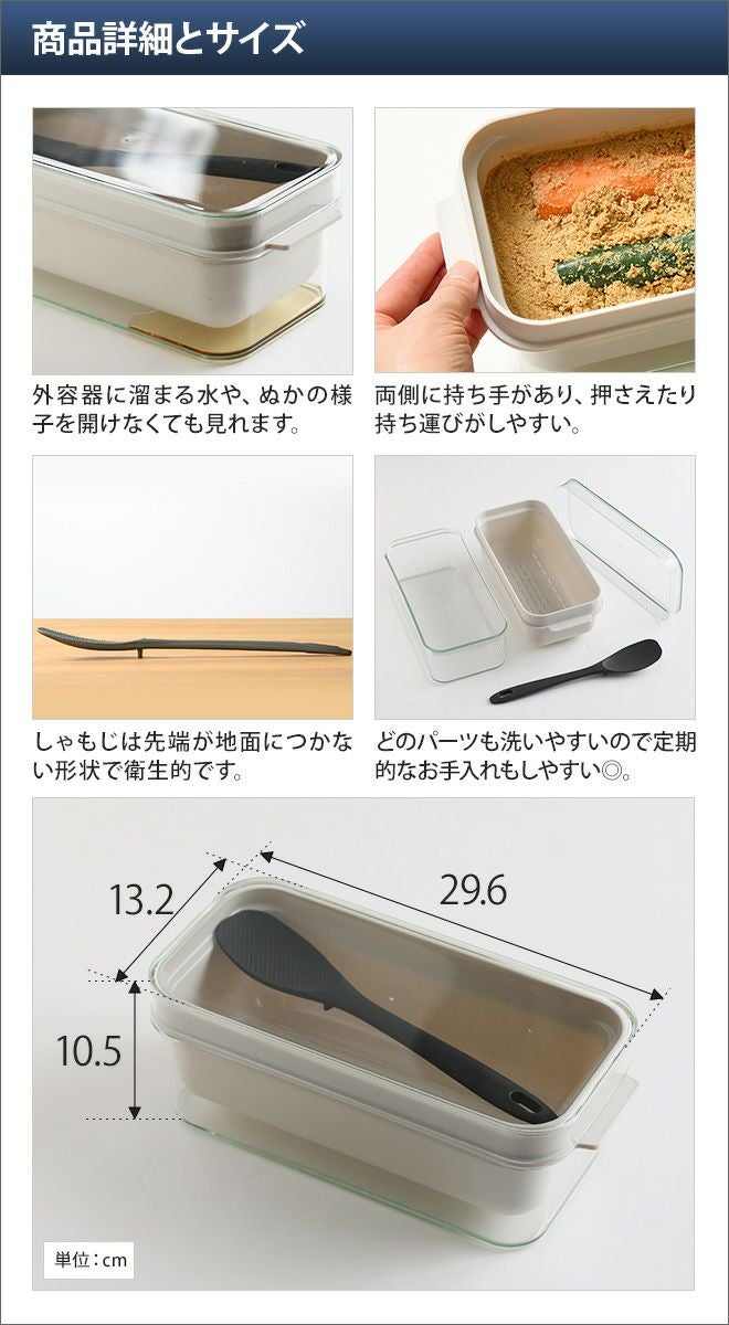 他の画像を見る 手軽に始められる、1kgサイズのぬか床容器!余計な水分が抜けやすい構造で、手を汚さず混ぜられる♪ レイエ 漬物容器 ぬかどこボックス LES3201 容器 保存容器 ぬか漬け プラスチック おしゃれ 保存 日本製 洗いやすい ぬか 収納しやすい 漬物 1kg 野菜保存 おすすめ 四角 器 重ねられる 食品 コンパクト 惣菜 ぬか床 蓋付き 持ち手 割れない デザイン 蓋 入れ物 leye 当店特別価格 ¥ 4,950 税込 詳細を見る お気に入りに登録する