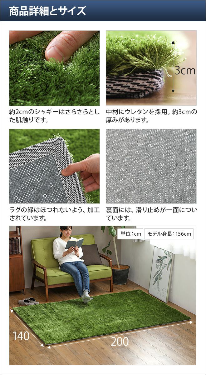 他の画像を見る 一目惚れしそうなほどに美しく気持ち良い、そんな毛足の長いラグマットを敷けば、お部屋も簡単にイメチェン完了! グラスラグ スクエア 140×200 当店特別価格 ¥ 19,800 税込 詳細を見る お気に入りに登録する