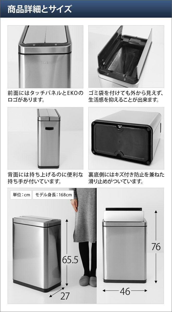 他の画像を見る 手をかざすだけで自動で開け閉めするスタイリッシュなごみ箱。市販のゴミ袋を使えて、節電機能も備えており実用的です。 EKO 【選べる豪華特典】 デラックスファントム センサービン ステンレス 蓋 45L 当店特別価格 ¥ 30,800 税込 詳細を見る お気に入りに登録する