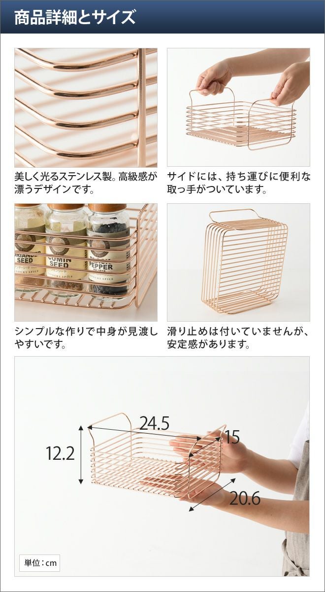 他の画像を見る 毎日使う、定番の物はここに。ピンクゴールドが美しいキッチンバスケット。 ハナウタ キッチンバスケットS ピンクゴールド 当店特別価格 ¥ 16,060 税込 詳細を見る お気に入りに登録する